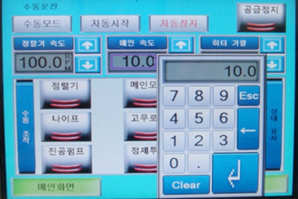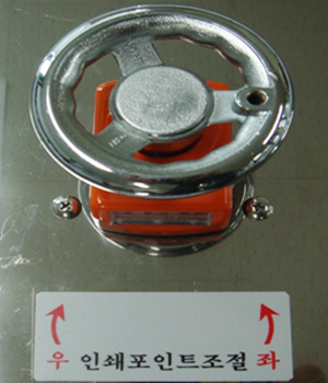 작업자의 안전을 생각하여 잔류 잉크 제거시 작업자의 손이 기계 쪽으로 너무 깊이 들어가면 안전바가 작동하여 기계가 정지한다.